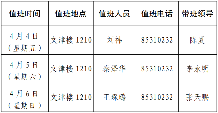 值班时间:8:30—12:00 14:30—17:30