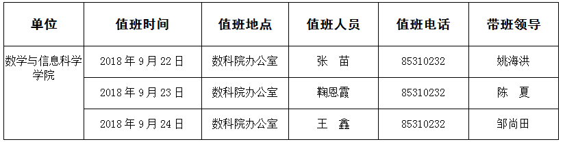 上班时间:上午08:30-11:30;下午14:30-17:30 办公电话:85310232;公司总值班电话:85310005;报警电话:85310110;急救电话:85310120—8120 注意事项:1、按时上下班;2、保持办公场所干净整洁;3、注意安全和防火,每天定时巡查公司办公场所;4、做好假期信件的收发工作,每周一、周四取信件;5、每周一给花浇水一次;6、值班结束时须做好办公室钥匙的交接工作;7、遇紧急突发情况,及时向相关领导汇报。