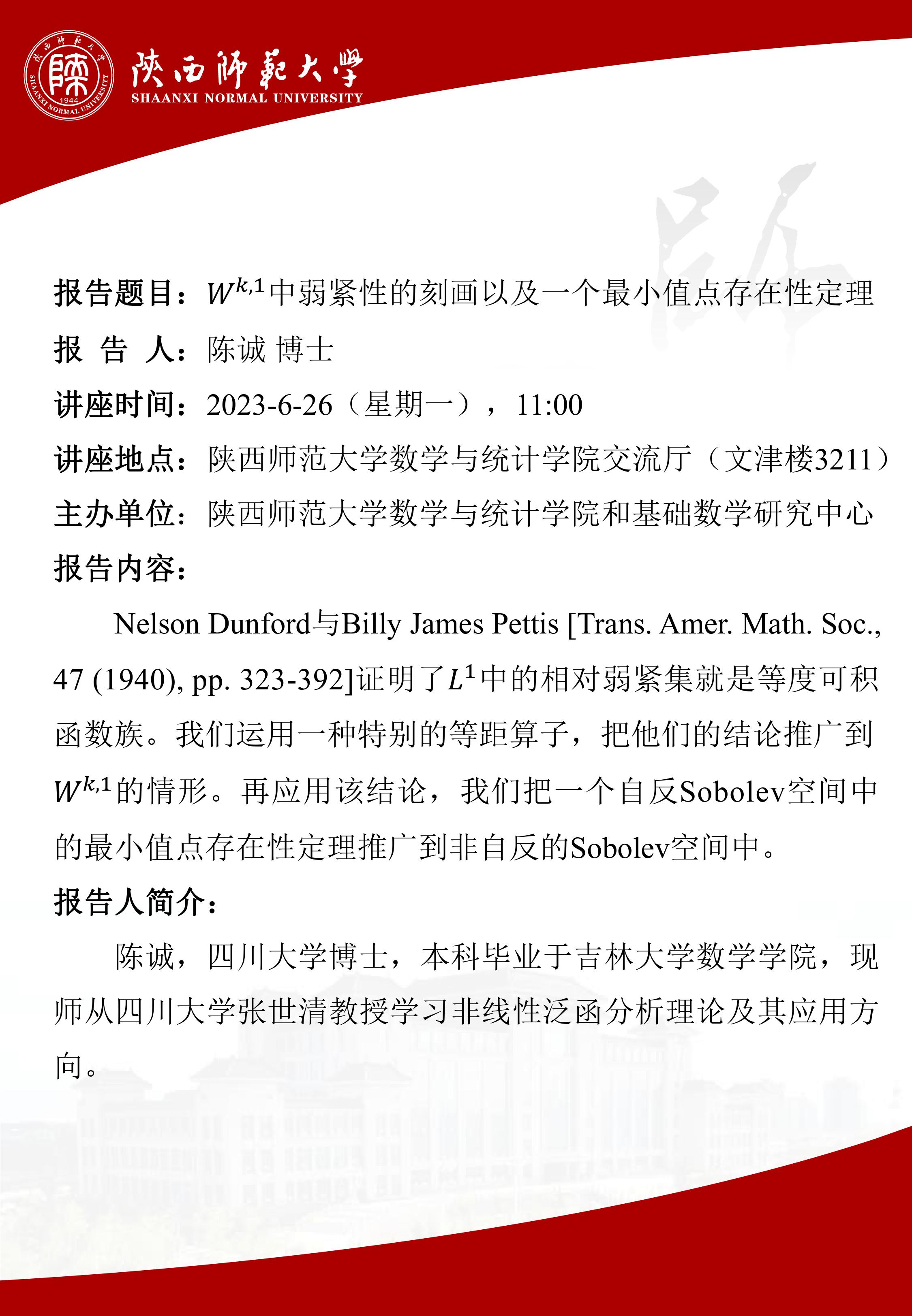 W^k,1中弱紧性的刻画以及一个最小值点存在性定理