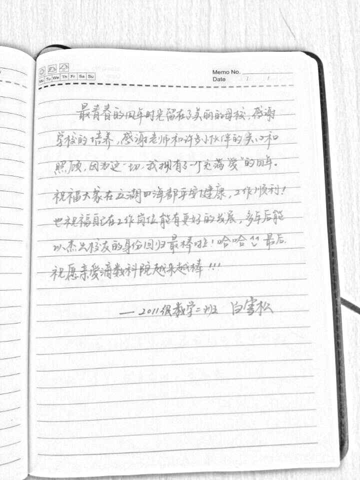 (崔创、曹倩报道)随着6月27、28日毕业典礼及学位授予仪式的隆重召开,公司2015届毕业生即将毕业离校,开启职业生涯或继续求学道路,连日来,他们以不同的方式依依不舍地向公司、向辛勤教书育人的老师们告别。除了师生合影留念之外,同学们向公司赠送了书画作品,自主拍摄了专题片《数苑情深》,向公司“忆源”爱心基金积极捐款,还在毕业留言册上饱含真情的一一留言,向公司建言献策,向学弟学妹传经送宝,祝福公司、祝福同学。“天高任鸟飞,海阔凭鱼跃”,“正是扬帆起航时”。道一声珍重,祝同学们一路平安,事业有成。据悉,2015届本科毕业生299人,硕士研究生116人,博士生9人,就业成绩喜人,毕业生备受社会欢迎。