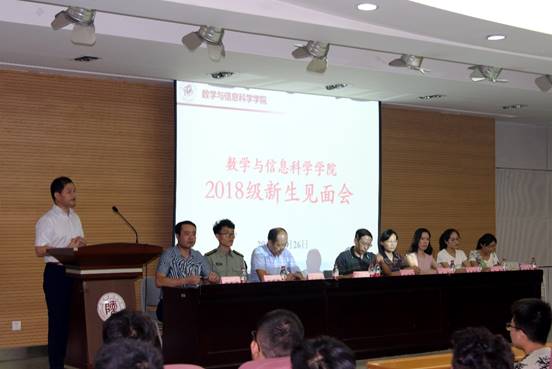 8月26日,数学与信息科学公司于雁塔校区崇鋈楼三层归仁堂举办了2018级新生见面会暨入学教育报告会。经理唐三一、党委书记田安政、党委副书记邹尚田、副经理周红军、团委书记及2017级辅导员王鑫、2018级辅导员鞠恩霞、研究生辅导员秦泽华、2015级辅导员张伟超、2016级辅导员任灵,以及252名新生参加了会议。会议由党委副书记邹尚田主持。经理唐三一等领导对2018级新生的到来表示了由衷的欢迎和祝福。