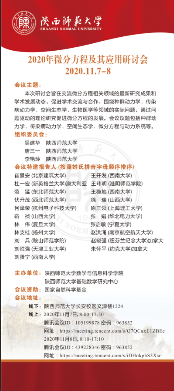 2020年微分方程及其应用研讨会