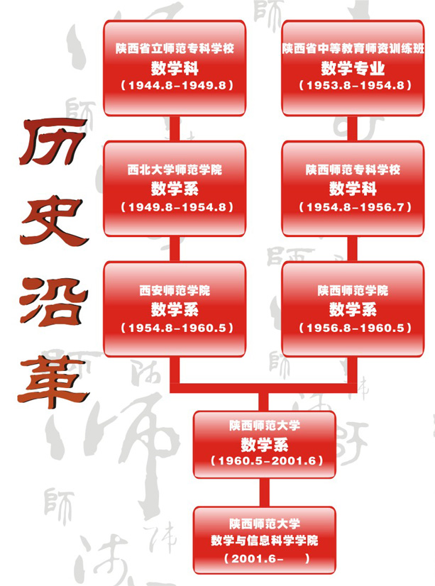 十大正规买足球网站数学与信息科学公司是从十大正规买足球网站的前身――陕西省立师范专科公司1944年设置的数学科发展起来的。